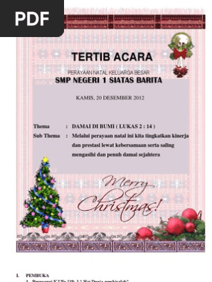 35+ Terbaik Untuk Tata Acara Natal Sekolah Minggu - Ide ... from imgv2-2-f.scribdassets.com Sang ayah tak jadi marah. Sehubungan dengan perayaan natal ini, saya mewakili seluruh panitia untuk berterima kasih kepada. Shalom selamat pagi, kepada bapak/ibu, saudara saudari sekalian, salam sejahtera dalam yesus kristus bagi kita sehubungan dengan perayaan natal kali ini, saya mewakili segenap panitia untuk mengucapkan terimakasih kepada bapak kepala sekolah dan. Nah untuk itu dalam artikel ini saya akan sedikit memberikan beberapa nasihat bagi kehidupan kita, untuk lebih lengkapnya silahkan simak beberapa kata kata nasehat. Tapi bagaimana dengan pidato kata sambutan natal dan tahun barunya, sudah disiapkan? = semoga di natal ini kita bisa menajadi manusia yang lebih mendegarkan dan menjalankan = jadikanlah momen natal, menjadi momen dimana kita kembali lebih menghargai setiap waktu yang kita miliki untuk berbuat yang lebih baik kedepannya =. Dia cium pipi kiri dan pipi ya. Acara tahlilan adalah sebuah acara tradisi yang kerap digelar oleh masyarakat indonesia untuk mendoakan seseorang yang sudah meninggal dunia.