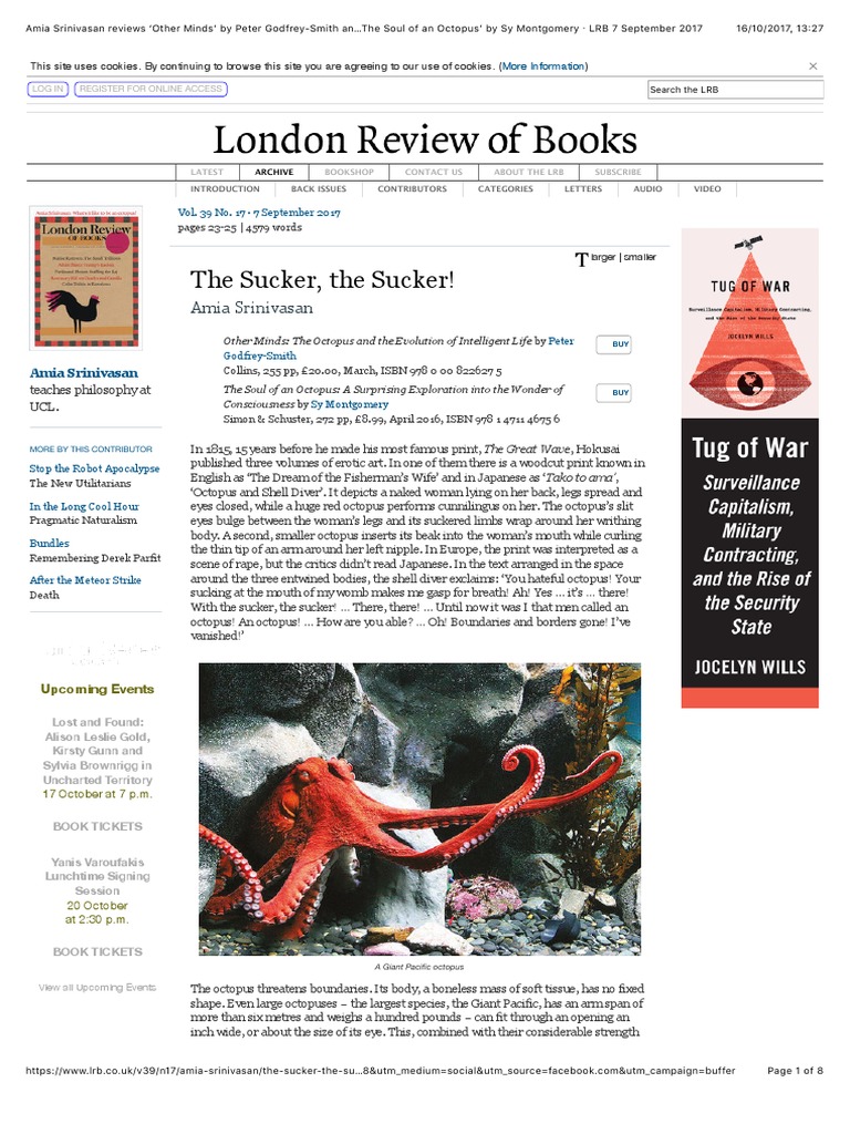 Amia Srinivasan / Capitalism, work, technology, the state, reproduction, identity, solidarity and the environment.i also give a series of lectures for the undergraduate 'feminism and philosophy.